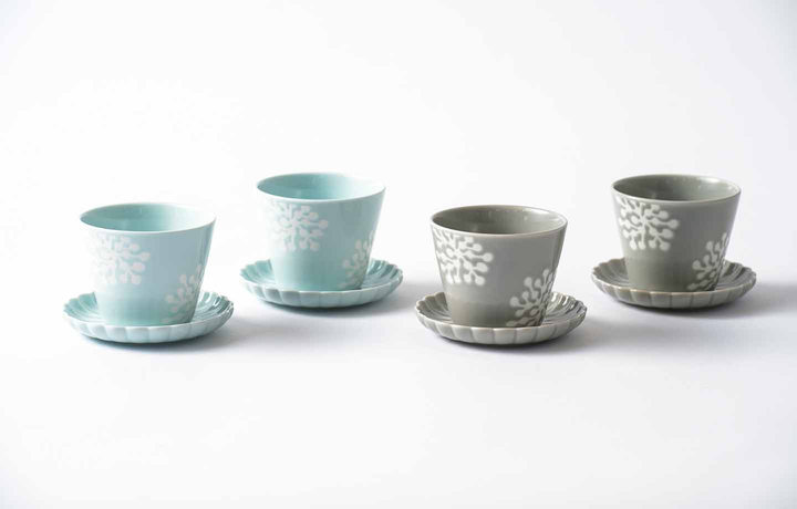 スタイリッシュな菊割の形と、ふんわり優しいにニュアンスカラーを合わせた、おしゃれな波佐見焼の新商品です。色はグレーとブルーの2色(同色4点セットです)。今だけ期間限定のお得なセットでお求めいただけます!