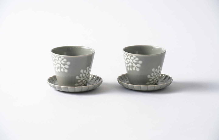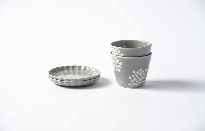 【セット内容】フラワー(グレー・ブルー)プレートS 2枚,カップ2個 同色4点1セット