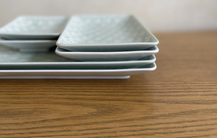 「麻の葉シリーズ」は、主張しすぎないカラーで料理がお洒落に映えるとても上品なデザイン。重なりもよく食器棚にもかさばらずに収納可能で、重すぎず使い勝手も抜群です。