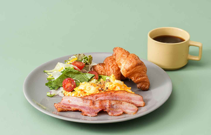 フライパンに油を挽かずに焼くと、ベーコンから油が出てきます。その油を捨てず、アツアツのまま生野菜にかけてください。どんなドレッシングよりも美味しく召し上がれます。