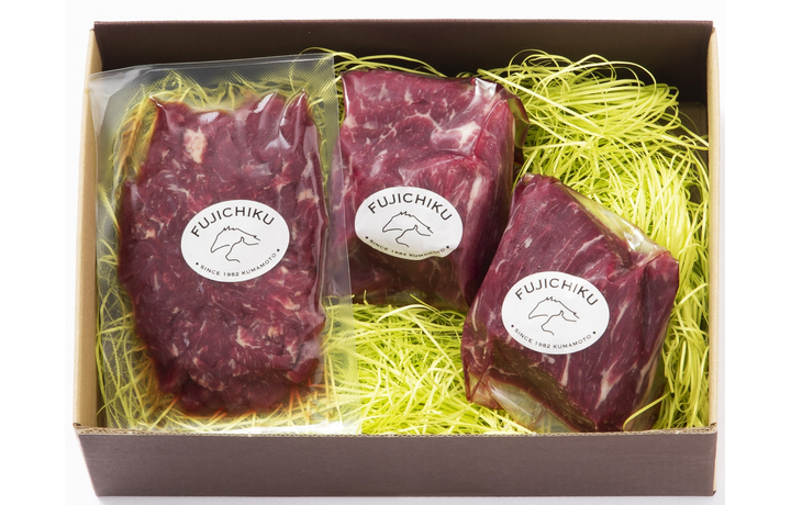 馬刺しの本場・熊本の自社牧場育ち、自社加工の新鮮なお肉をお届けいたします。熊本特産の馬刺しの醍醐味である「霜降り」馬刺し。なかでも大トロは口の中に入れた瞬間、馬肉ならではの甘みのあるサシが溶け出し、豊かな甘みが口いっぱいに広がります。、中トロは赤身とサシのバランスが絶妙にマッチしており、赤身の旨みをサシの甘みがより引き立てます。たたきは旨みを閉じ込めあっさりとした味わいをお楽しみいただけます。定番にして、一番人気上赤身はモチっとしていながら歯切れの良い食感と馬肉本来の旨みが特徴です。さらに今では貴重となったユッケは馬刺し用の新鮮な馬肉を100%使用。自社独自の配合で丁寧に細切りに仕上げました。専門店がこだわり抜いたそれぞれの特徴、本場の味をお楽しみください。