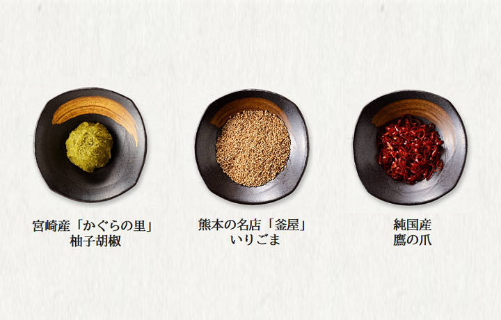 ・薬味(柚子胡椒、いりごま、鷹の爪)