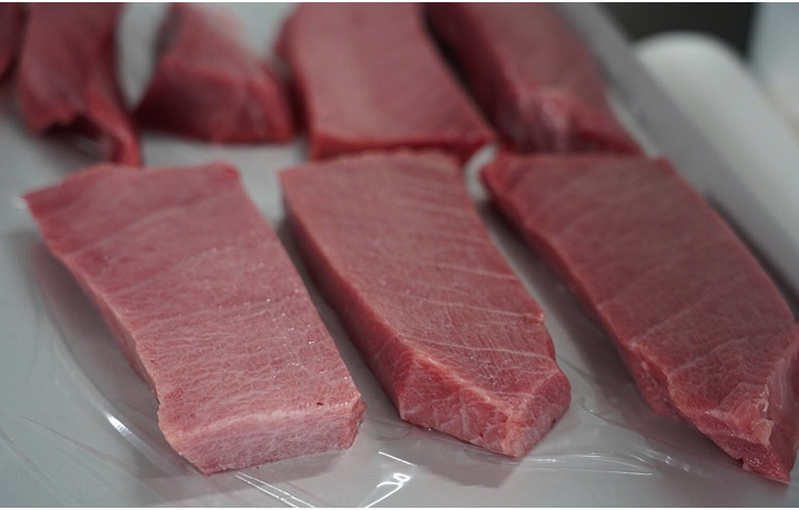 お召し上がりの3時間前に、お皿の上にキッチンペーパーを敷き、その上に刺身ブロックを置いて冷蔵庫内で解凍されて下さい。