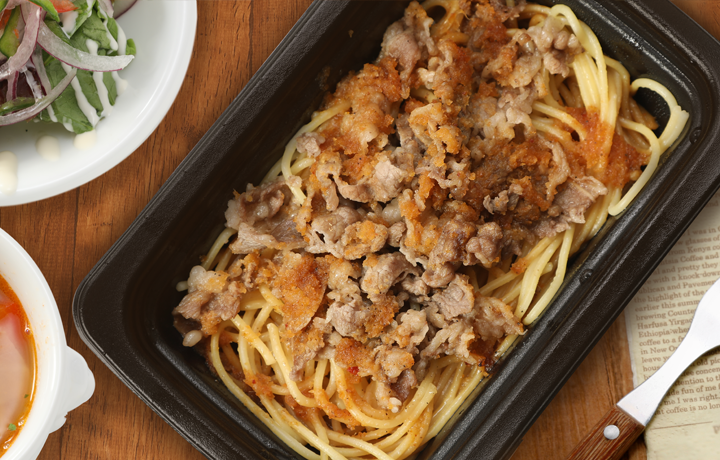 2.袋から容器を取り出し、肉の上のフィルムを取って全体をよくかき混ぜてお召し上がり下さい。
