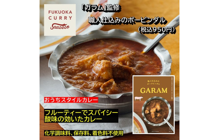 ポークビンダルーは以前、店で不定期に出していたメニューでした。特にこのレシピは手間がかかることもあり、現在、店舗営業では出していない状況です。しかし、定期的に、お客さんから「食べたい」という要望を受けていました。ちょうどカレーレトルトのお話をキヨトクの渡邊さんから頂いた時みなさんに食べて頂くなら、このポークビンダルーでできないか、と考えました。材料のバランスを取るのが難しく何度も試作を繰り返しました。最終的には、ガラムらしさが出た仕上がりとなりました。甘・辛・酸のバランスやスパイス感もうまく出せたので、店のファンの方も納得していただけるポークビンダルーになったと思います。御自宅でぜひ、GARAMの味を楽しんでください。