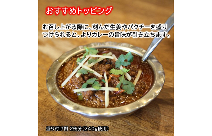 【使用上の注意】●開缶時に切り口で手を傷つけないようにご注意ください。●加熱後の開缶時や容器に移す際はやけどをしないようにご注意ください。●缶のまま直火や電子レンジで温めないでください。●開封後はすみやかにお召し上がりください。※本商品のカレーの中にスパイスの種や皮が入っておりますので、気になる方は取り除いてお召し上がりください。