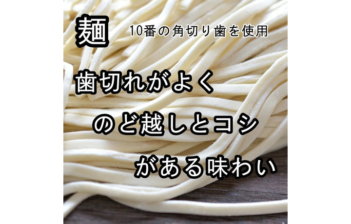 ・国産小麦ならではの風味の良さと、10番切り歯で仕上げたのど越しの良さとコシのバランスをお楽しみください。