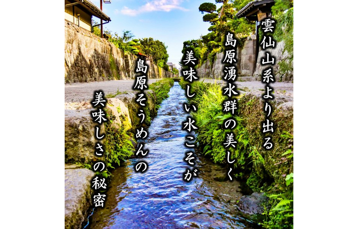 ・日本名水百選にも選ばれた、雲仙山系より出る島原湧水群の美しく、美味しい水こそが、島原そうめんの美味しさの秘密です。