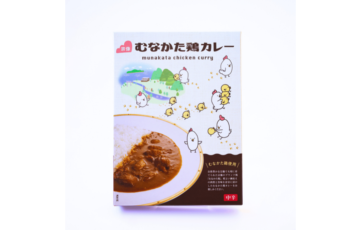 宗像の飼料で大切に育てられた宗像のブランド鶏「むなかた鶏」。程よい歯ごたえの肉質と旨味を存分に生かしたむなかた鶏カレーをお楽しみください。