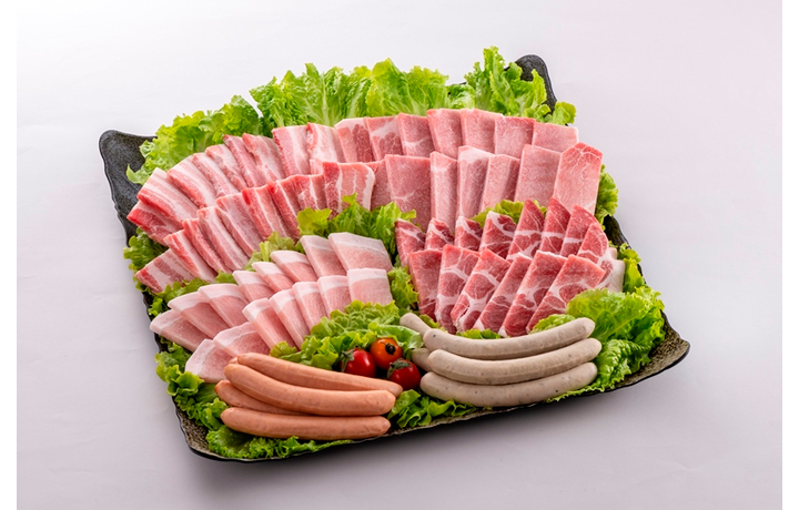 ロース(150g)、肩ロース(150g)、バラ(300g)、モモ(350g)、ウィンナー(2パック)※全て焼肉用にカットしています。※掲載のセットは、盛り付けイメージです。