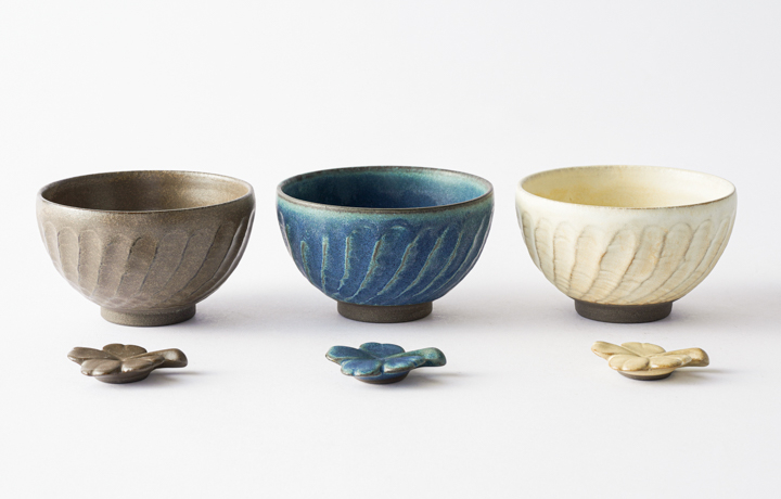 波佐見焼 ねじり縞茶碗と箸置きのセット(計2点セット)