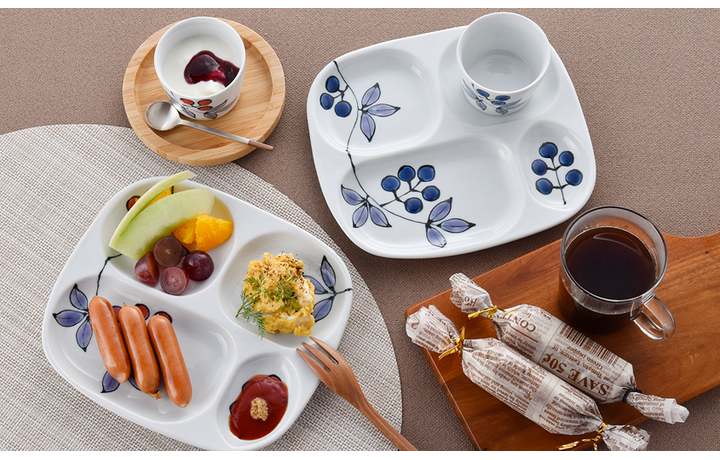 また、釉薬の上に色を付ける「上絵」ではなく、早い段階の焼成前に色を付ける「染付」なので、 電子レンジや食洗器も使え、色剥げもありません。