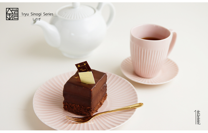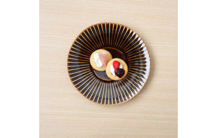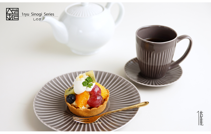 エッジの効いたフォルムに落ち着いた色釉薬と「しのぎ」のコントラストがとても美しい茶碗。