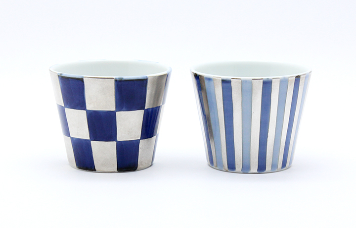 ・銀彩染付フリーカップ(小)市松・十草2種セット