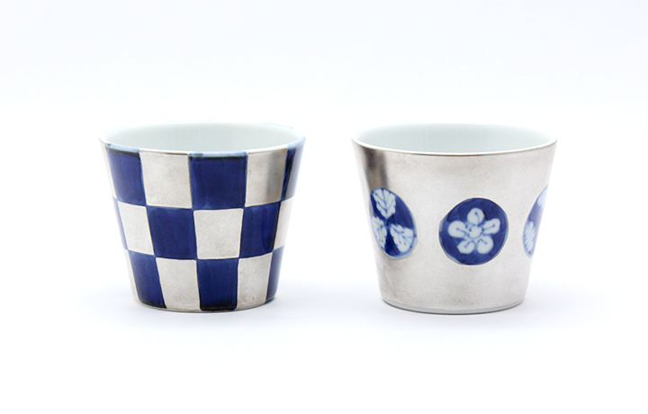 ・銀彩染付フリーカップ(小)市松・丸紋2種セット
