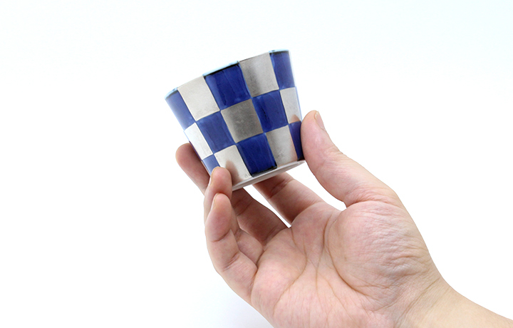 ・銀彩染付市松フリーカップ(小)