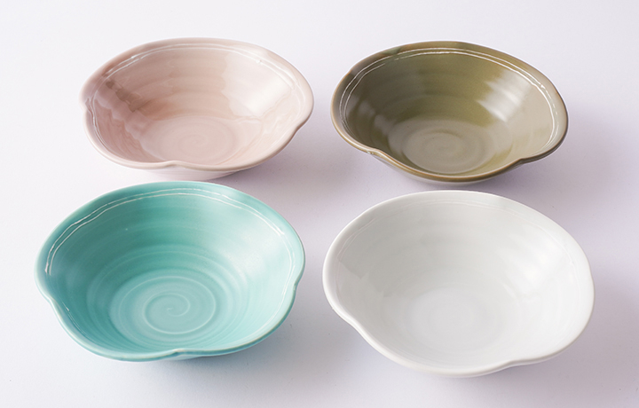 花形ボウル:直径16×高さ4.7㎝(ピンク、ホワイト、ターコイズ、カーキ)