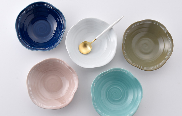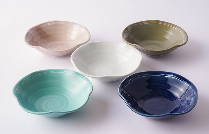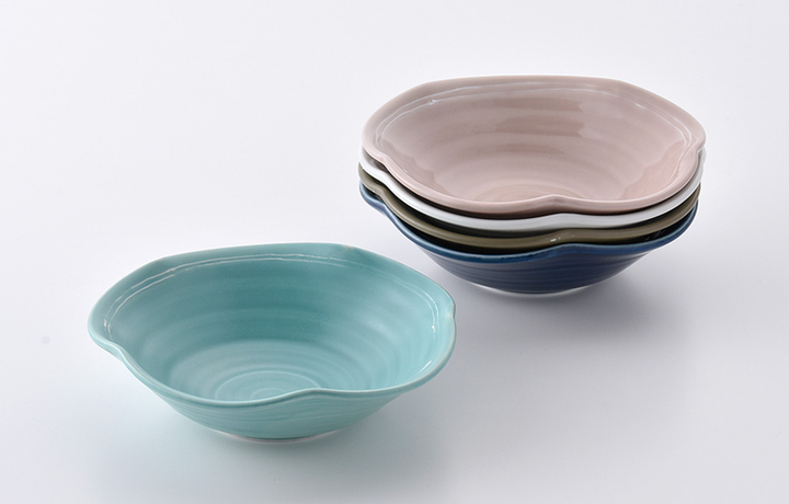 花形ボウル:直径16×高さ4.7㎝×重さ252gピンク、ホワイト、ターコイズ、カーキ