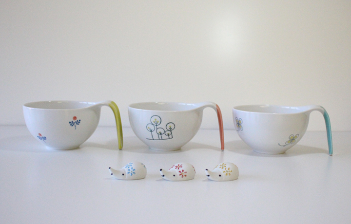 波佐見焼 「オーブン耐熱ファンカップ&ラスターはりねずみ」耐熱スープ碗&箸置き6点セット