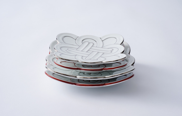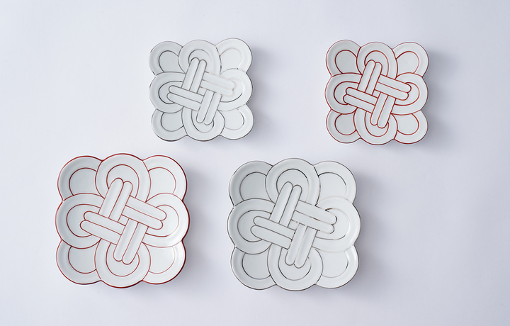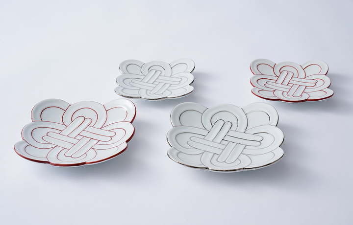 縁起のいい吉祥結びのデザインをモチーフとした有田焼です。