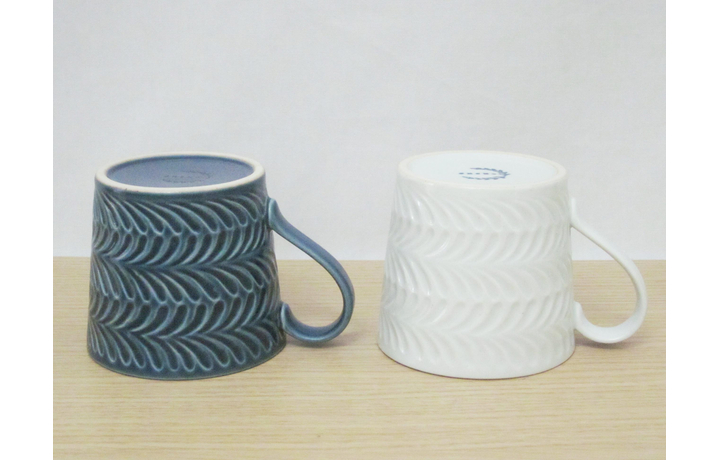 波佐見焼・翔芳窯さんの大人気商品『ローズマリー』のマグカップペア(白マット&デニム)です。