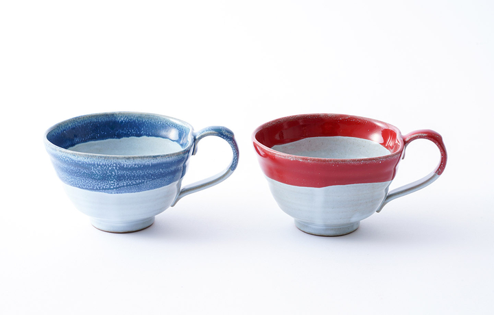 スープカップ 掛分レッドと掛分ブルーのペアセット