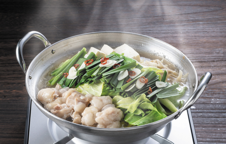 【博多旨だしもつ鍋】「みそ味」や「しょうゆ味」とは一線を画す、和風だし仕立ての上品なもつ鍋はいかがでしょうか。