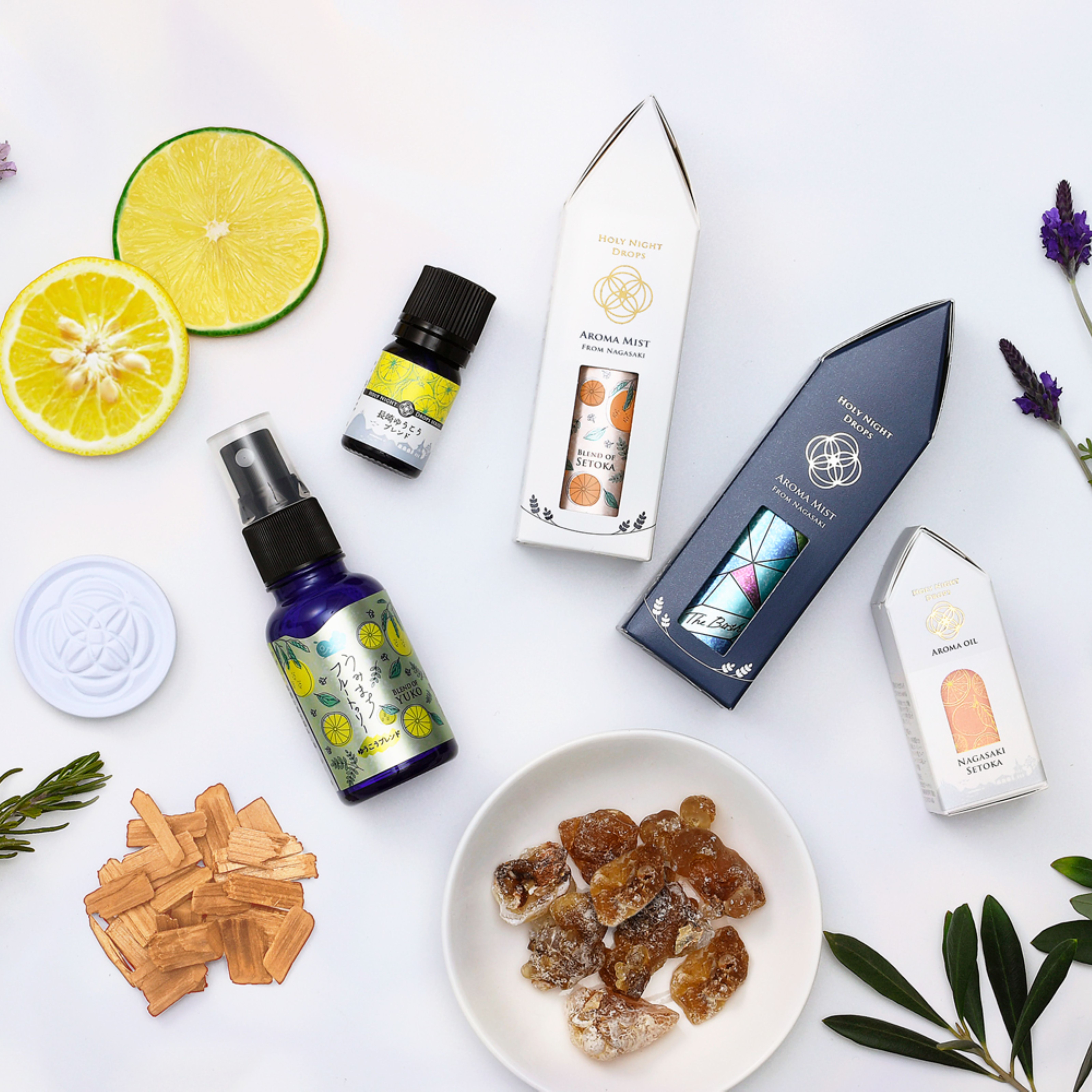 日本が鎖国をしていた江戸時代、国内唯一の貿易港として栄え、独自の『和華蘭文化』が花開いた長崎。『聖夜のしずく』は、この地に息づく異国情緒を受け継ぎ、香りで癒しをお届けするアロマブランドです。和と洋の天然精油が織りなす独自ブレンドにこだわり、保存料不使用で、心と体に寄り添うものづくりを徹底。長崎外海の伝統柑橘「ゆうこう」や、海のまち・琴海で育った完熟前の「せとか」など、長崎の果実から抽出した精油も取り入れながら、『祈りの地長崎』で生まれた彩り豊かな香りをお楽しみください。