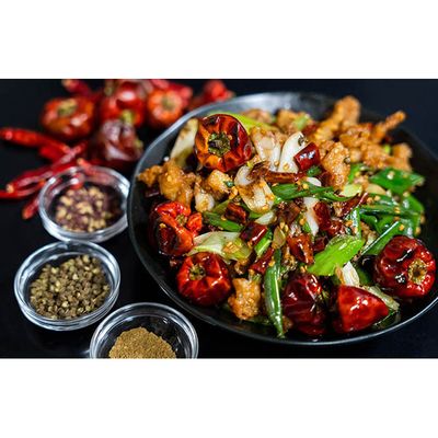 揚げた鶏肉の唐揚げを大量の唐辛子や花椒などで炒めた四川料理「ラーズーチー」。四川花椒の痺れと唐辛子の辛さが演出する”シビ辛”は、一度ハマると抜け出せなくなるおいしさです。スパイスインストラクターを取得する店主・濱がラーズーチーにドハマりしたことから商品開発が始まった当店の辣子鶏は、10年間の試行錯誤の末に完成させました。『辛・オブ・ザ・イヤー2024』でグランプリを獲得した、辛党もイチ押しする当店自慢の逸品をぜひご賞味ください。