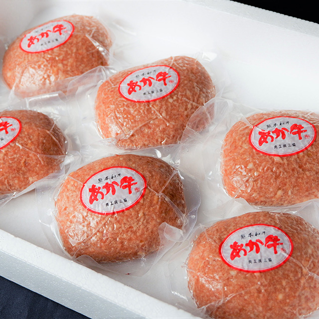 広大な草原やきれいな水、穏やかな気候など、あか牛の飼育に最適な環境が揃っている熊本県は、あか牛の生産量日本一を誇り、全国の生産量の約70%を占めます。 あか牛の三協グループでは、阿蘇市一の宮の広大な牧場で、約1,300頭の甲誠牛を肥育しています。のびのびとストレスのない環境で育った健康的なあか牛は、肉質も極上で豊かなうま味と適度な霜降りを楽しむことができます。
