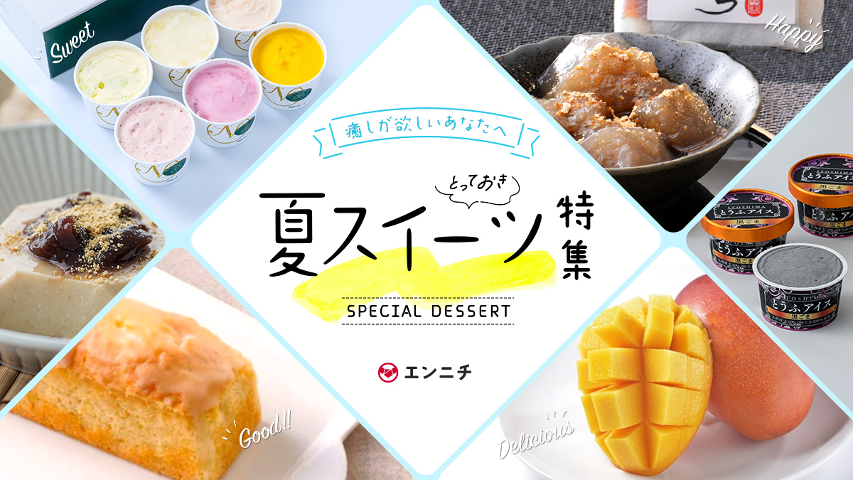 地域の特産品を使用したご当地スイーツや、生産者のこだわりがたっぷり詰まったスイーツをご紹介!夏の定番アイスや、心が和む和菓子、贅沢フルーツなどなど。大切な人への贈り物や自分へのご褒美に、人気のひんやりスイーツをお楽しみください!